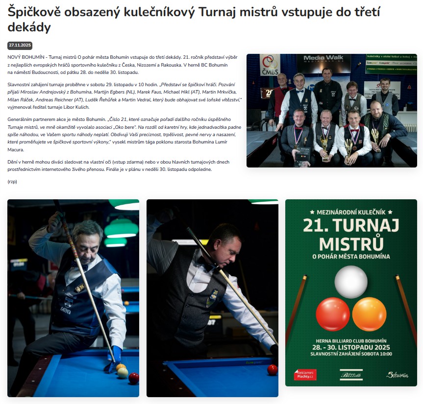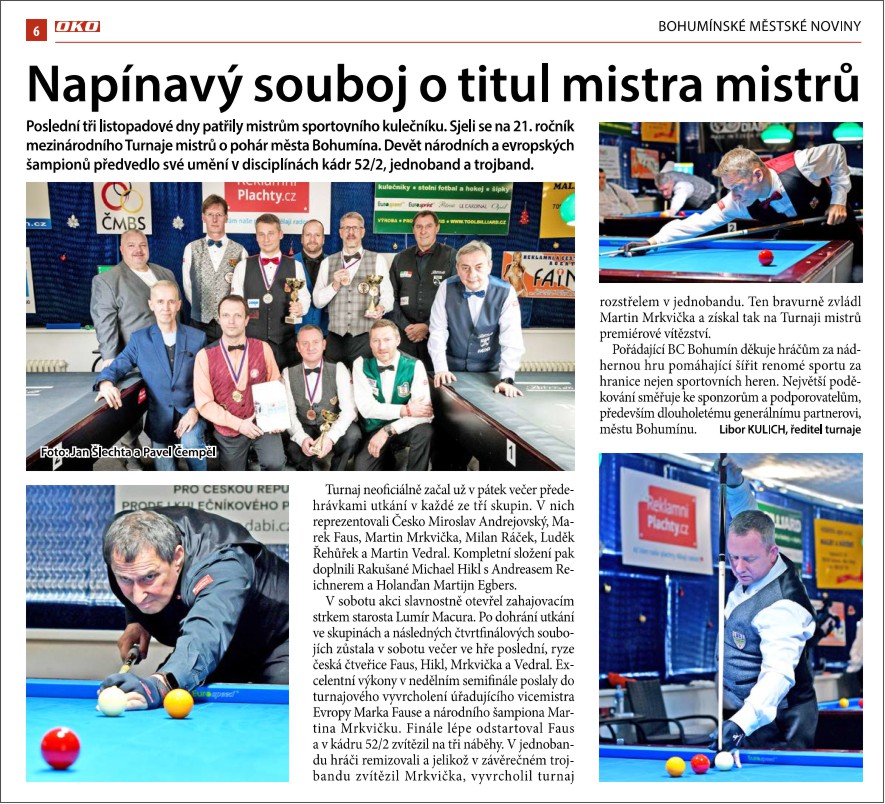 TURNAJE MISTRŮ O POHÁR MĚSTA BOHUMÍNA,
